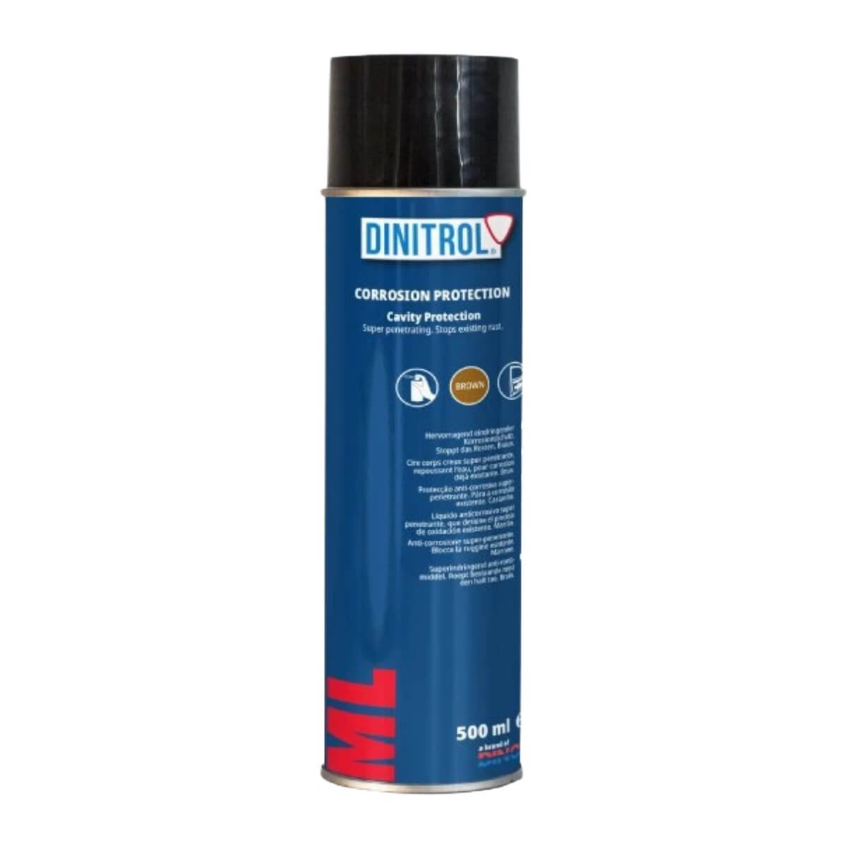 Penetračný voskový olej ML určený na dutiny ktoré boli napadnuté koróziou v 500ml balení od značky Dinitrol, kód 11071