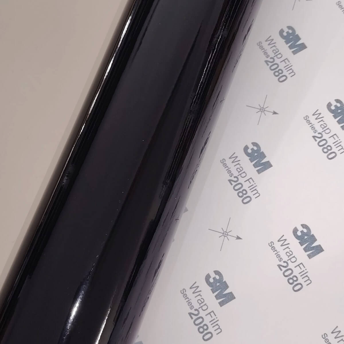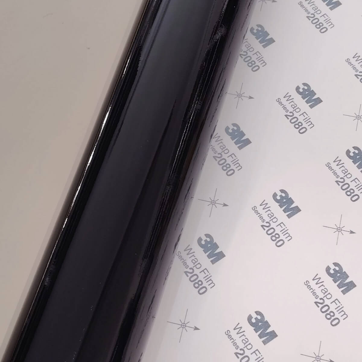 Čierna lesklá liata fólia kód odtieňu G12 Air Free 3M 2080 - so vzduchovými kanálikmi, určená na celopolepy áut. Bežný meter 1,52x1m