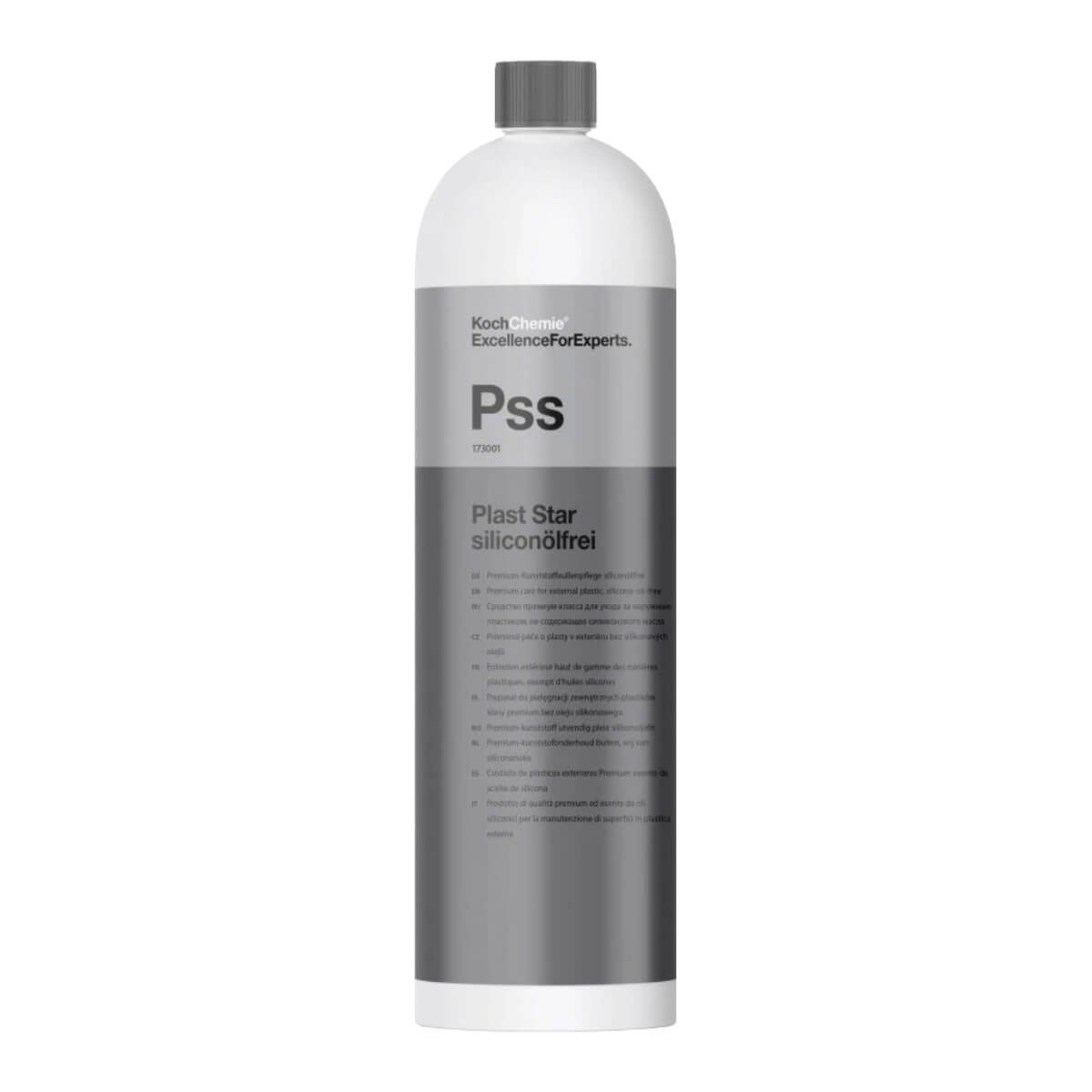 Prípravok na dlhodobú konzerváciu exteriérových plastov a pneumatík Plast Star siliconölfrei (Pss) v litrovom balení od značky Koch Chemie, kód 173001