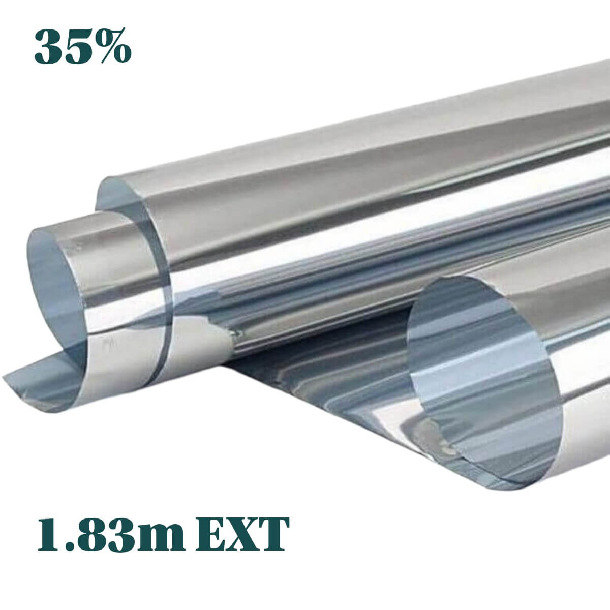 Exteriérová strieborná zrkadlová fólia na okná s 35% priepustnosťou svetla, rozmer 1,83x1m